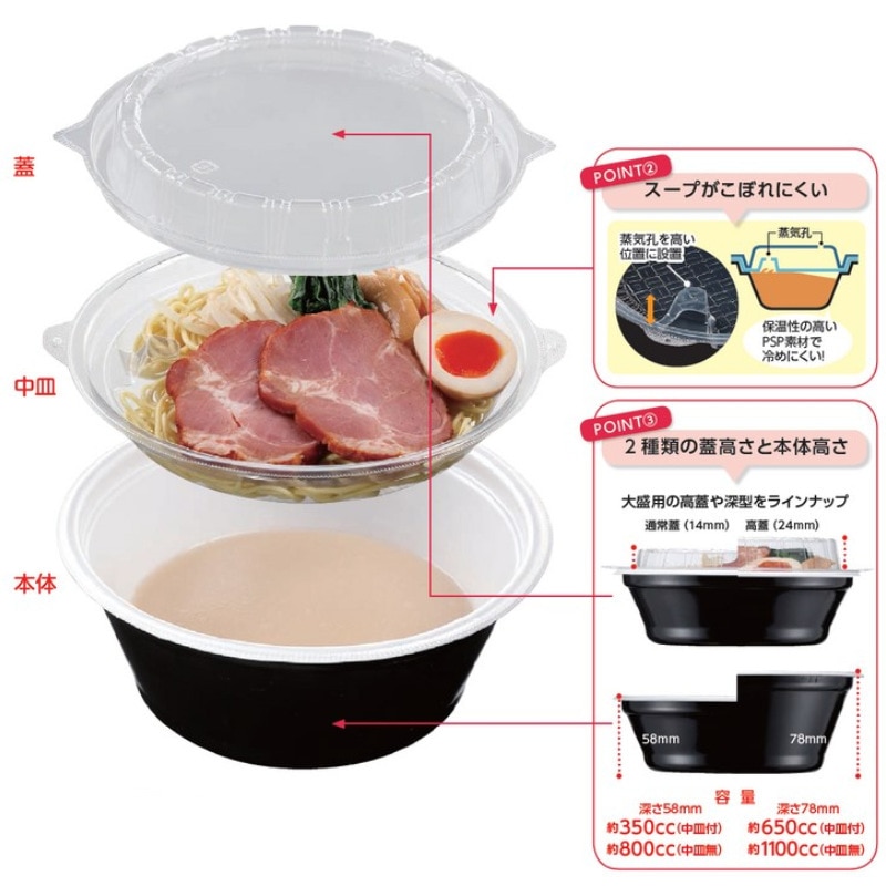 デリバリー用麺容器「DLV麺20」用の中皿の嵌合蓋です。