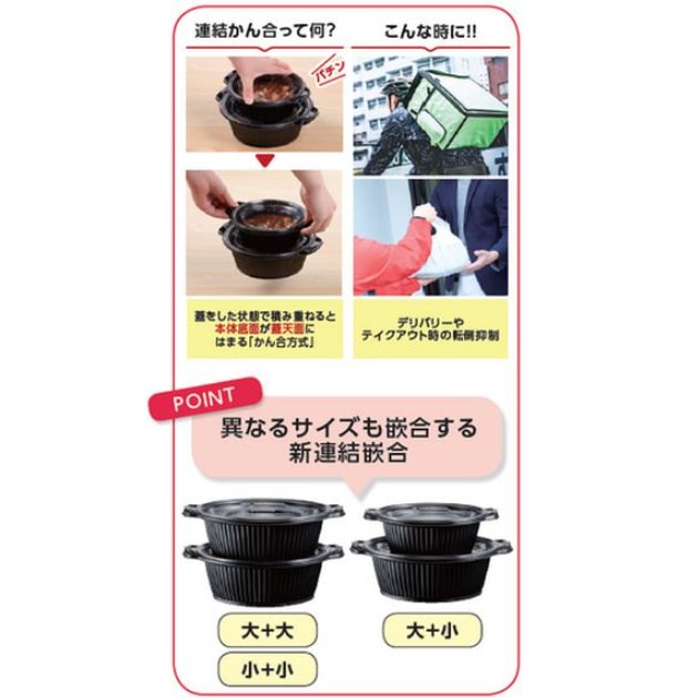 省スペースで輸送時の揺れでもスープがこぼれにくくなっています。