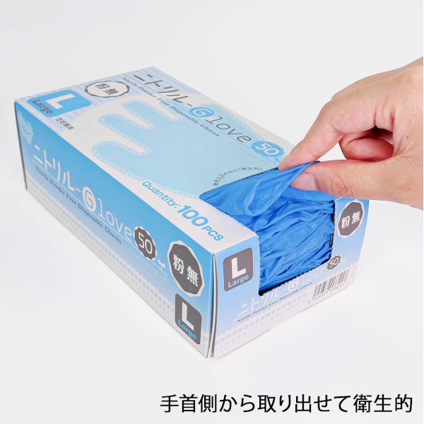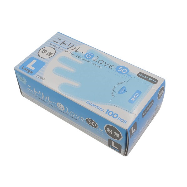 ニトリルGLOVE50 粉無 青 L