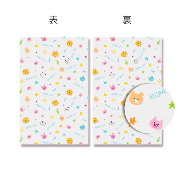 優しいカラーとたくさんの動物たちの顔に癒されるデザインです。