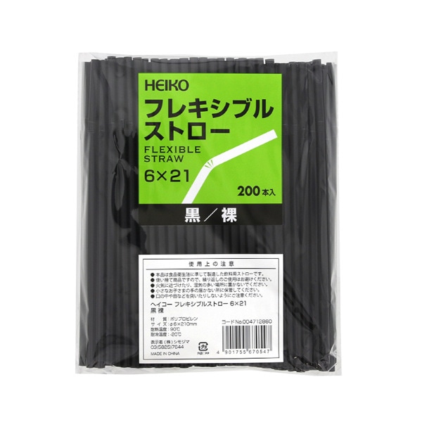 フレキシブルストロー 6x21 裸 黒 200本 #4712860